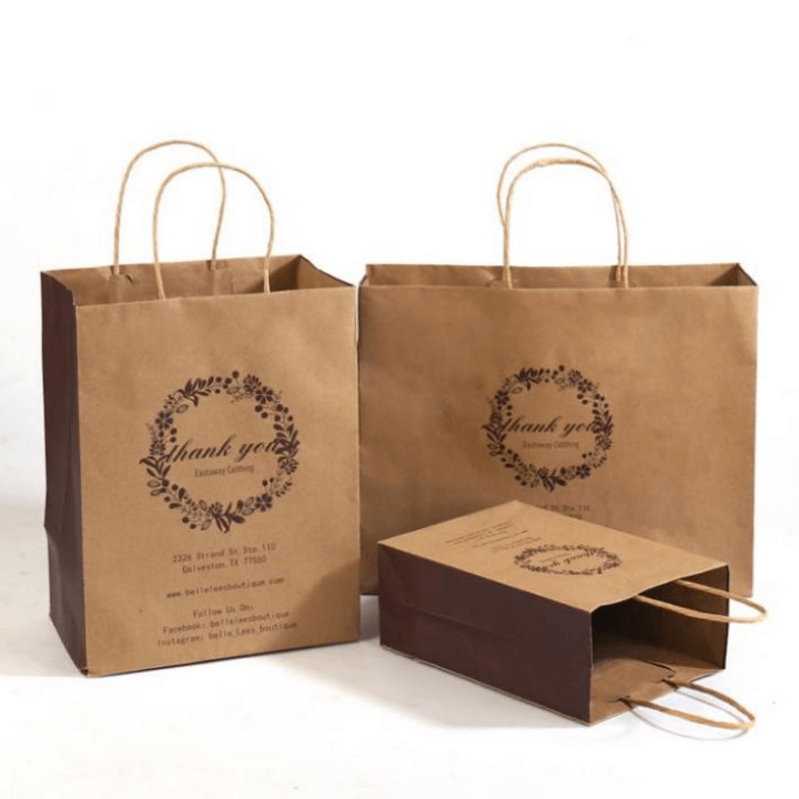 Varejo local : produz sacolas de compras para padarias, lojas de presentes e pequenas lojas, com impressão flexível opcional (3 cores, 150dpi) para logotipos personalizados.